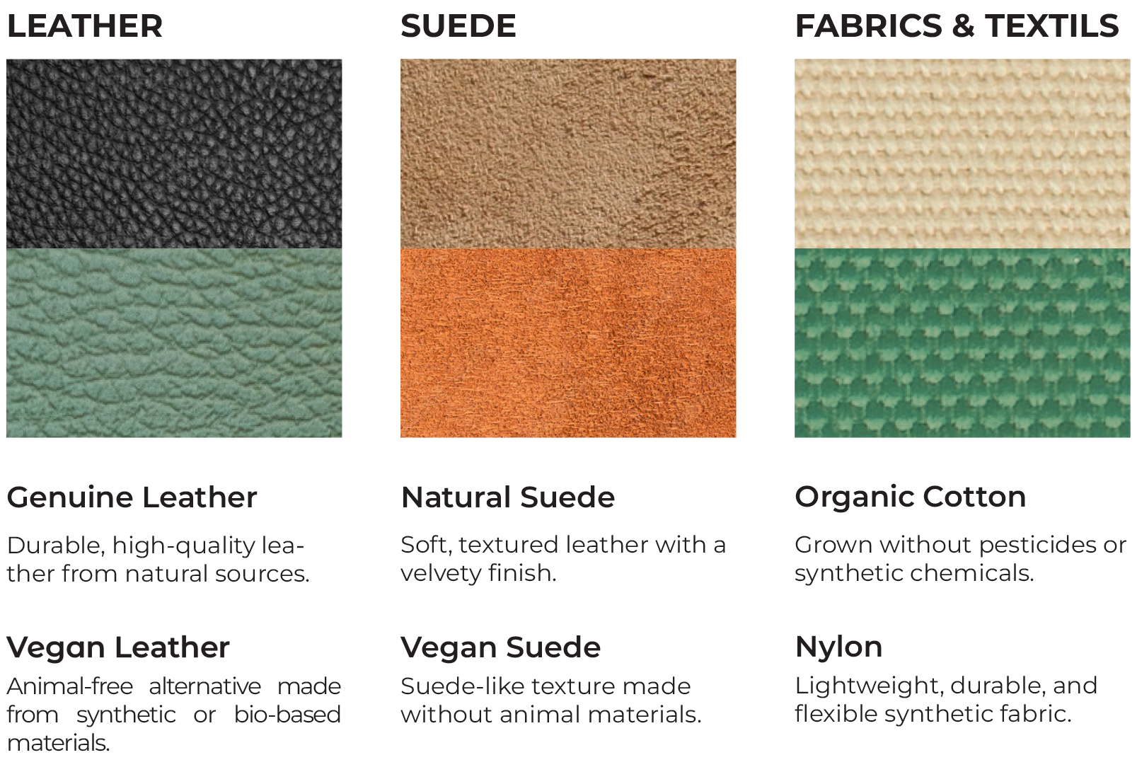 We have a variety of materials to choose from, mix and match to create your perfect trainer.